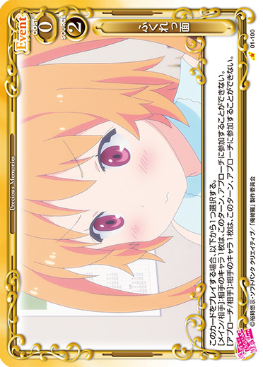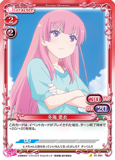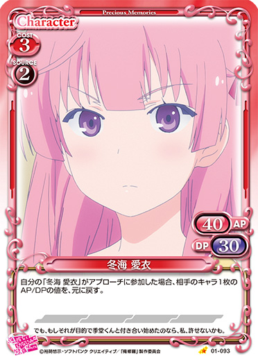 | 自分の「冬海 愛衣」がアプローチに参加した場合、相手のキャラ1枚のAP/DPの値を、元に戻す。 | ||