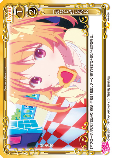 | [アプローチ/両方]:自分の「春咲 千和」1枚は、ターン終了時まで+20/+20を得る。 | ||