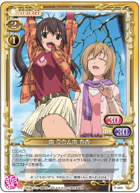| 〔コンビ〕〔アクティブ〕[天然2] このカードが登場した場合、相手のキャラ1枚を休息状態にする。 | ||