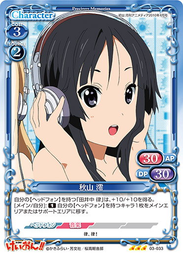 | 自分の【ヘッドフォン】を持つ「田井中 律」は、+10/+10を得る。 | ||