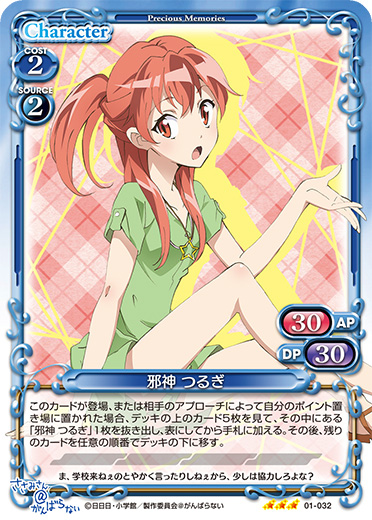 | このカードが登場、または相手のアプローチによって自分のポイント置き場に置かれた場合、デッキの上のカード5枚を見て、その中にある「邪神 つるぎ」1枚を抜き出し、表にしてから手札に加える。その後、残りのカードを任意の順番でデッキの下に移す。 | ||