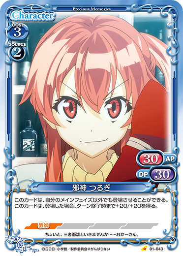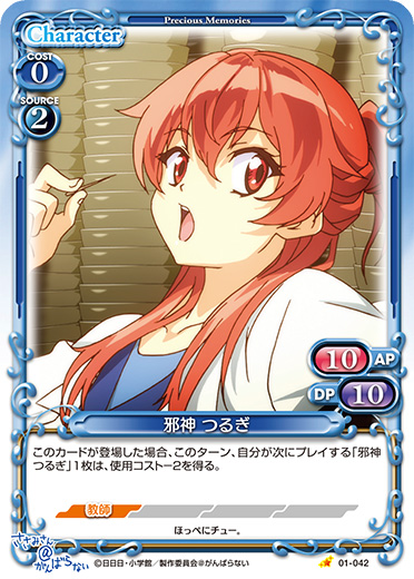 | このカードが登場した場合、このターン、自分が次にプレイする「邪神 つるぎ」1枚は、使用コスト-2を得る。 | ||