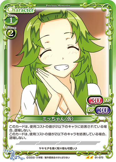 | このカードが自分の「ミッちゃん(仮)」がいる状態で登場した場合、カードを2枚引く。 | ||
