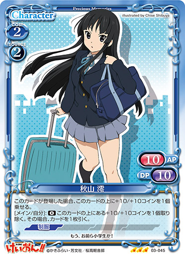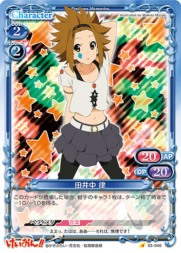 | このカードが登場した場合、相手のキャラ1枚は、ターン終了時まで-10/-10を得る。 | ||