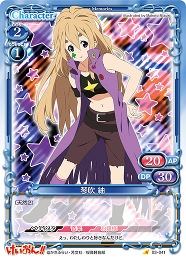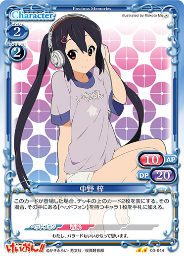| このカードが登場した場合、デッキの上のカード2枚を表にする。その場合、その中にある【ヘッドフォン】を持つキャラ1枚を手札に加える。 | ||