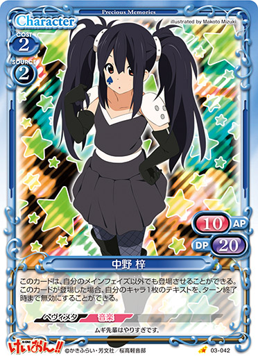 | このカードは、自分のメインフェイズ以外でも登場させることができる。 このカードが登場した場合、自分のキャラ1枚のテキストを、ターン終了時まで無効にすることができる。 | ||
