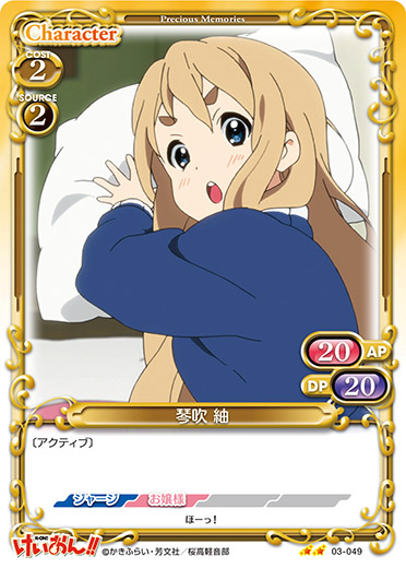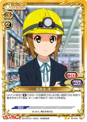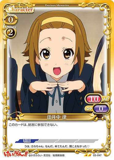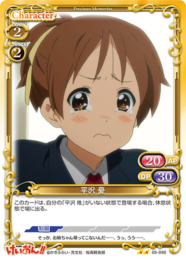 | このカードは、自分の「平沢 唯」がいない状態で登場する場合、休息状態で場に出る。 | ||