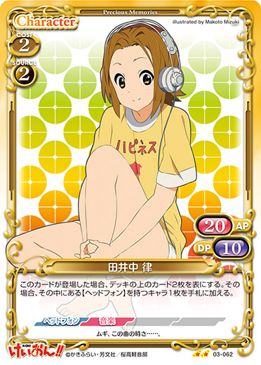 | このカードが登場した場合、デッキの上のカード2枚を表にする。その場合、その中にある【ヘッドフォン】を持つキャラ1枚を手札に加える。 | ||