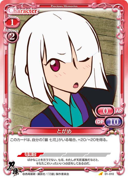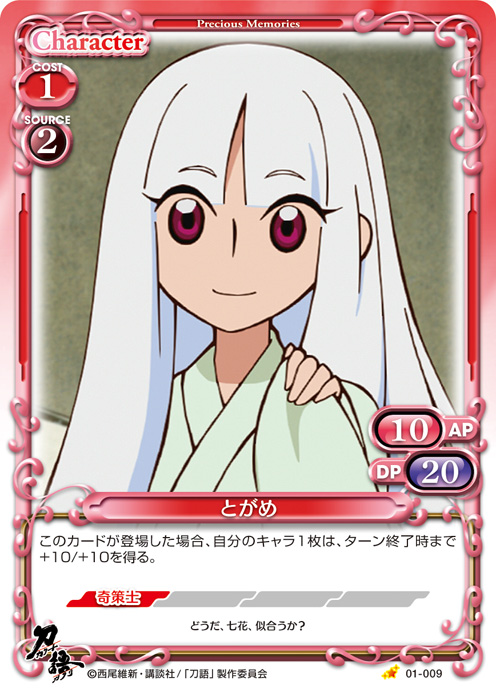 | このカードは、自分の「鑢 七花」がいる場合、+20/+20を得る。 | ||