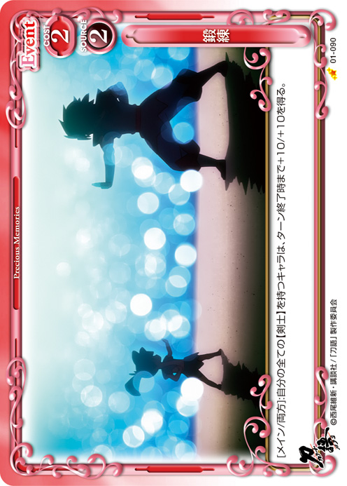 | [メイン/両方]:自分の全ての【剣士】を持つキャラは、ターン終了時まで+10/+10を得る。 | ||