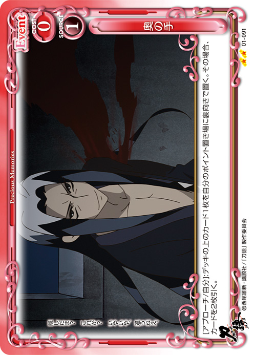 | [アプローチ/自分]:デッキの上のカード1枚を自分のポイント置き場に裏向きで置く。その場合、カードを2枚引く。 | ||
