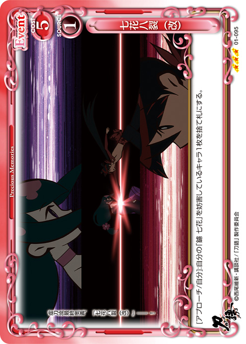 | [アプローチ/自分]:自分の「鑢 七花」を妨害しているキャラ1枚を捨て札にする。 | ||