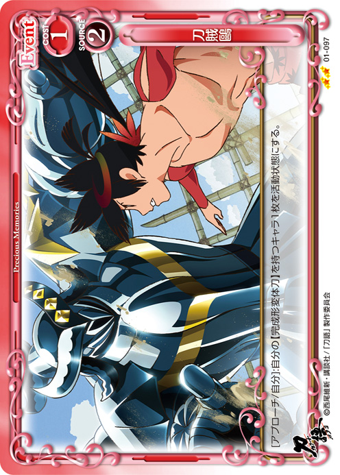 | [アプローチ/自分]:自分の【完成形変体刀】を持つキャラ1枚を活動状態にする。 | ||