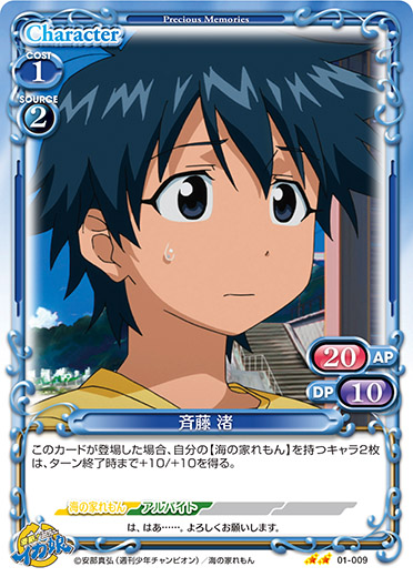 | このカードが登場した場合、自分の【海の家れもん】を持つキャラ2枚は、ターン終了時まで+10/+10を得る。 | ||