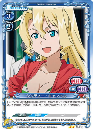 | [メイン/自分]:《0》自分の【研究所】を持つキャラ2枚を休息状態にする。その場合、このカードは、ターン終了時まで+10/+10を得る。 | ||