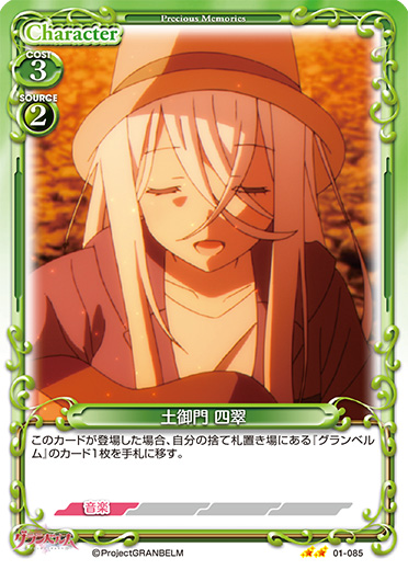 | このカードが登場した場合、自分の捨て札置き場にある『グランベルム』のカード1枚を手札に移す。 | ||