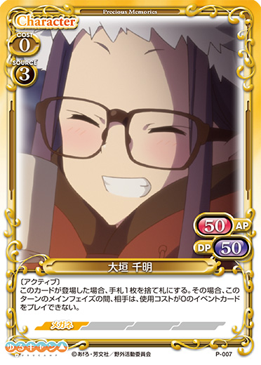 | 〔アクティブ〕このカードが登場した場合、手札1枚を捨て札にする。その場合、このターンのメインフェイズの間、相手は、使用コストが0のイベントカードをプレイできない。 | ||
