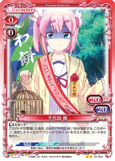 | 〔EXカード〕このカードが登場した場合、自分の「千代田 桃」1枚を指定する。このターン、指定したキャラがアプローチでポイントを与えた場合、カードを2枚引く。 | ||