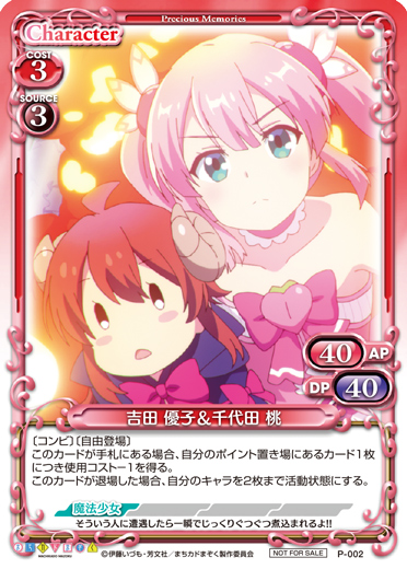 | [アプローチ/自分]:自分のキャラ2枚は、ターン終了時まで〔アクティブ〕、+10/+10を得る。 | ||