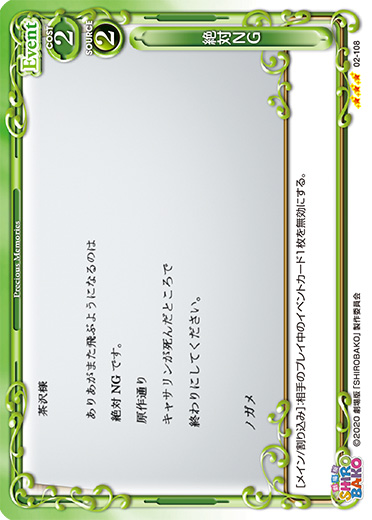 | [メイン/割り込み]:相手のプレイ中のイベントカード1枚を無効にする。 | ||