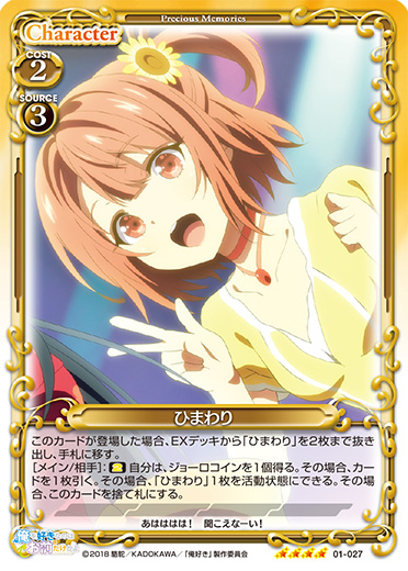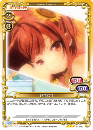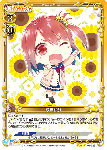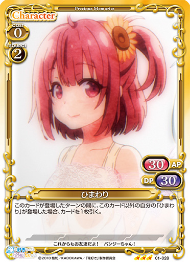 | このカードが登場したターンの間に、このカード以外の自分の「ひまわり」が登場した場合、カードを1枚引く。 | ||