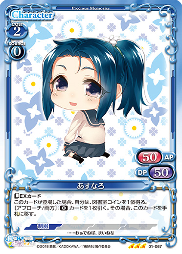 | 〔EXカード〕このカードが登場した場合、自分は、図書室コインを1個得る。[アプローチ/両方]:《0》カードを1枚引く。その場合、このカードを手札に移す。 | ||