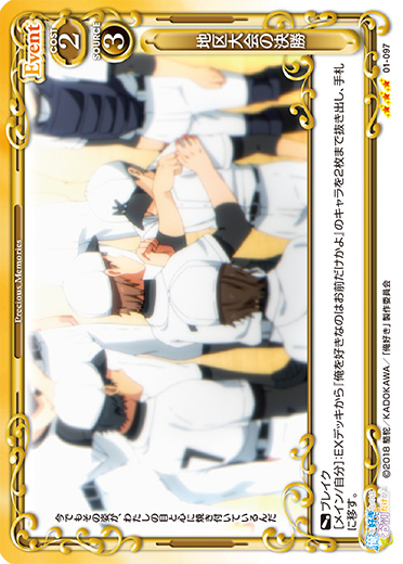 | 〔ブレイク〕[メイン/自分]:EXデッキから『俺を好きなのはお前だけかよ』のキャラを2枚まで抜き出し、手札に移す。 | ||